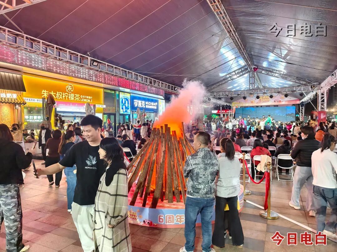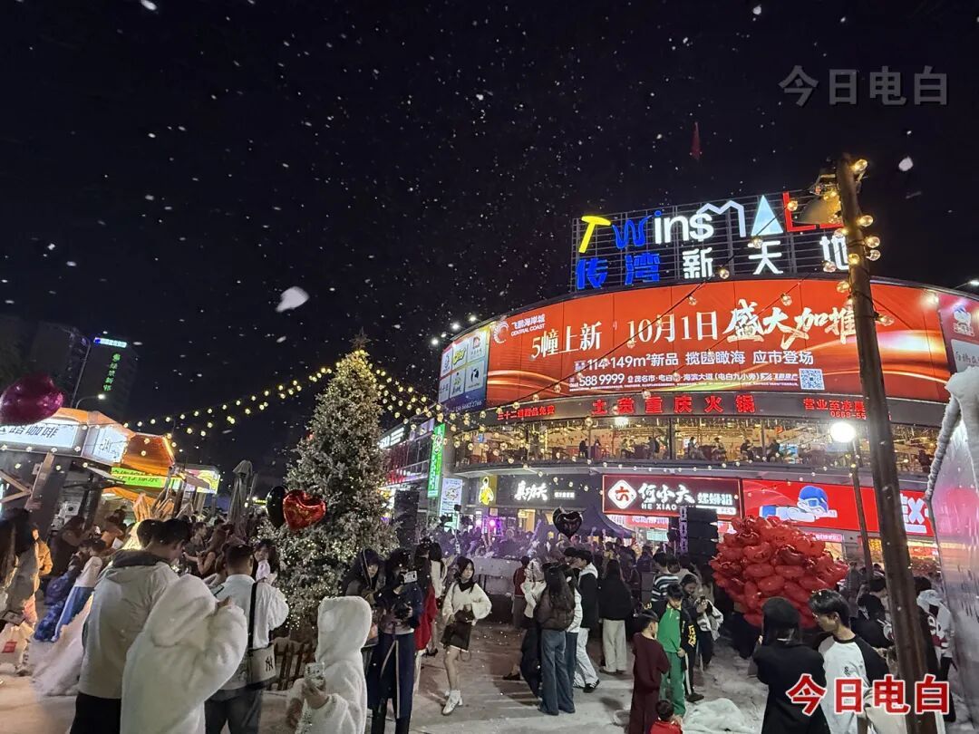 商圈内其他商业体同样热度爆棚。电白万达的张杰演唱会现场转播、篝火音乐会氛围感拉满,千人烤羊宴、金枪鱼宴香气四溢,少儿才艺汇演、维密秀等活动轮番上演,跨年祝福大屏与整点拍卖会持续升温;传湾新天地的“雪地电音狂欢夜”以银装雪景为天然舞台,电音与乐队Live双重加持,全员零距离蹦迪释放一整年的疲惫;“不夜城·电白酒吧街”灯火璀璨,驻唱演出与跨年倒数点燃氛围,延长至凌晨6点的营业时段让烟火气与潮流感持续升腾。
